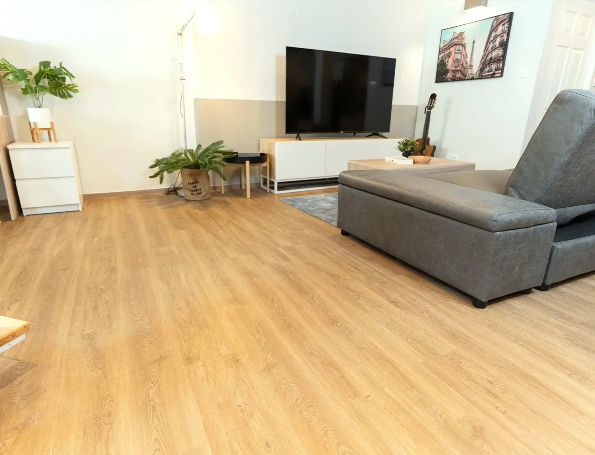Le parquet est simplement installé au sol, sur une sous-couche, avec les clips en aluminium qui permettent de maintenir les lames entre elles. Sans colle, ni clou, ni vis !